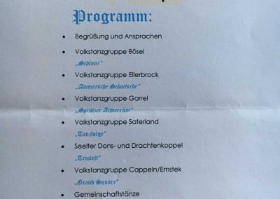 Als Überraschungsgast war der Vorsitzende des Heimatvereins Lastrup e.V. Karl-Heinz Lübbehüsen eingeladen. Er unterhielt die Gäste mit einigen lustigen plattdeutschen „Dönkes“ und Anekdoten. Bei Musik, Tanz und Unterhaltung verlebten die Teilnehmerinnen und Teilnehmer noch schöne Stunden im Kreise der Volkstänzerinnen und Volkstänzer.