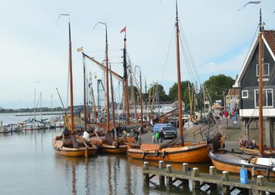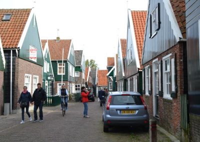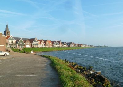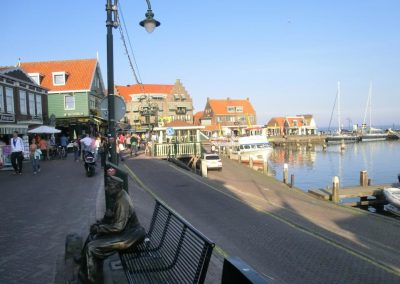 Bevor es am dritten Tag auf den Heimweg ging, war noch eine Schifffahrt zur kleinen vorgelagerten Halbinsel Marken organisiert. Sie wurde 1164 durch die verheerende St.Juliansflut vom Festland abgetrennt und 1957 durch den Bau eines 2km langen Deiches im Südwesten mit diesem wieder verbunden. Das Fischerdorf Marken bietet mit seinen grün-weiß gestrichenen Holzhäusern, die zum Schutz vor Hochwasser teilweise auf Pfählen stehen, und dem Hafen einen besonders reizvollen Anblick.