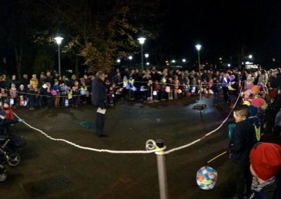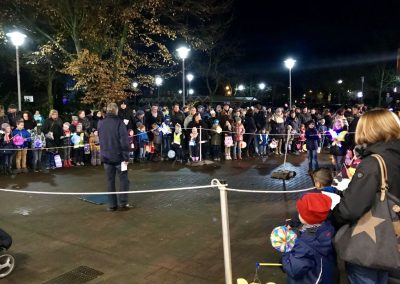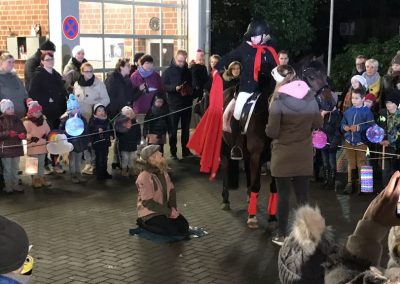 Mit großer Freude konnte der Vorsitzende des Heimatvereins Cappeln e.V., Manfred Plog, eine große Anzahl von Kindern mit Ihren Eltern zum diesjährigen St.Martins- Umzug in Cappeln begrüßen. Die Kindergärten St. Anna und St. Peter und Paul, die Feuerwehr, der Musikverein und der Heimatverein Cappeln hatten die Veranstaltung vorbereitet. Zu Beginn hatte der Vorsitzende des Heimatvereins in seiner Begrüßung noch einmal an die Bedeutung und die Geschichte des Hl. Martin erinnert. Er forderte die Kinder auf, den Gedanken der Nächstenliebe und des Teilens auch in der heutigen Zeit nicht zu vergessen. Er erinnerte daran, dass es vielen Menschen in der Welt nicht so gut geht. Viele Kinder würden an Hunger und Unterernährung leiden. Hier sei Solidarität gefragt. Bevor der Umzug begann, wurde den Kindern und ihren Eltern die Szene mit dem Hl. Martin auf seinem Pferd und dem Bettler dargestellt und dabei gemeinsam das Martinslied gesungen. Anschließend führten die Fackelträger der Jugendfeuerwehr den Laternenumzug in Begleitung des Musikvereins durch die Straßen des Dorfes. Am Schluss erhielten die Kinder als Dank für ihre Teilnahme eine „Martinsgans“ und alle konnten sich mit einem von der Jugendfeuerwehr vorbereiteten warmen Getränk und einem kleinen Imbiss stärken.